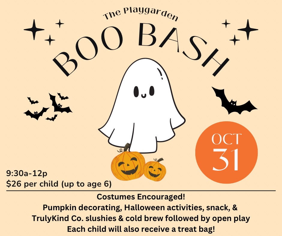 Pumpkin decorating, Halloween activities, open play, snack, & TrulyKind Co. will have their cart set up from 9:30a-10 with apple cider slushies (for kids & adults) & cold brew with flavors & milk (for adults)