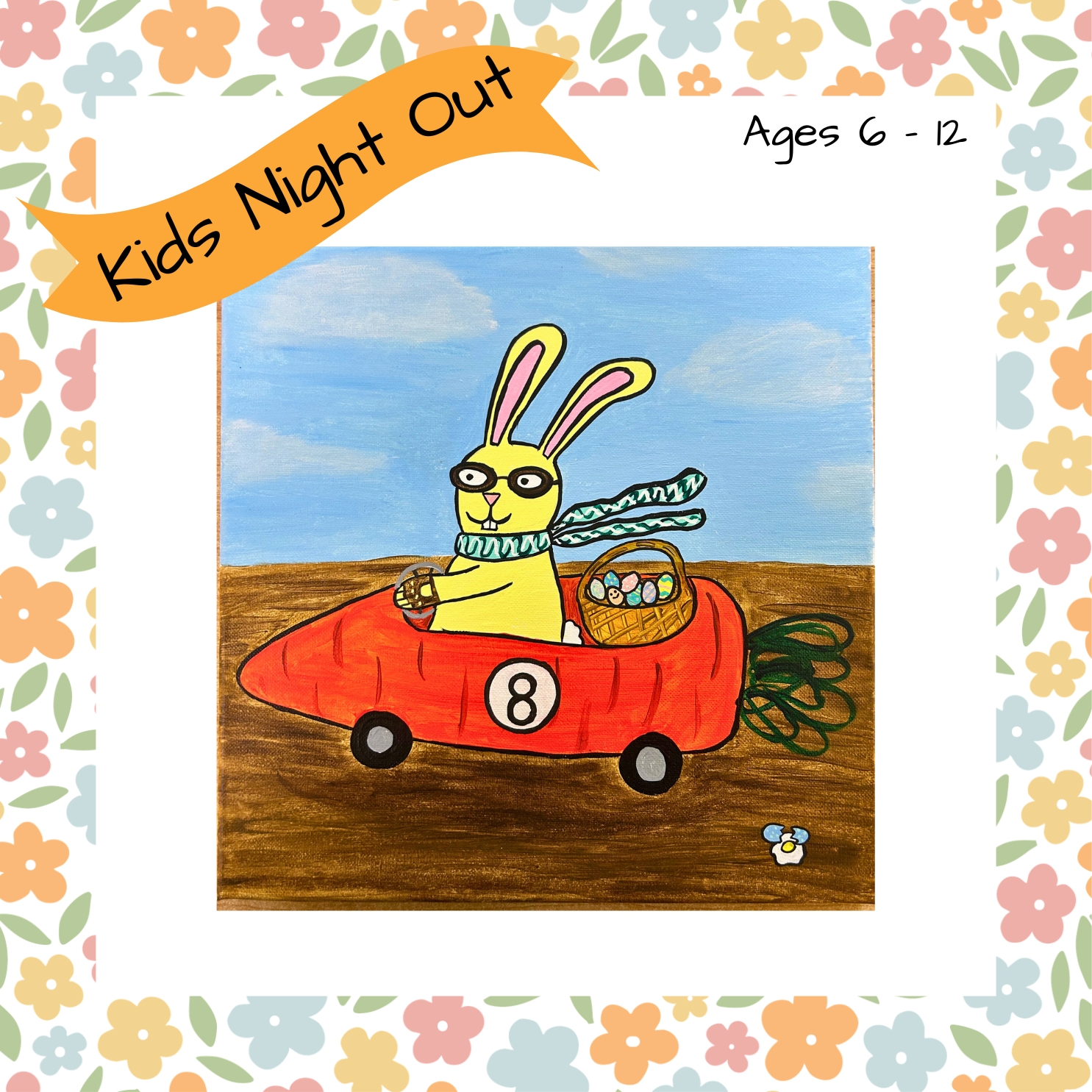 Kids join us for a fun night out! We will be painting this Bunny carrot-mobile!
