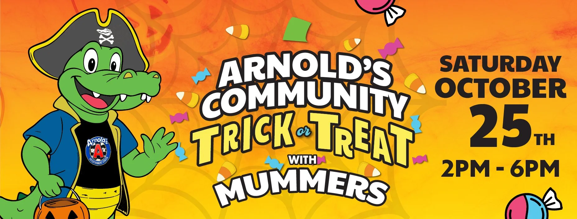 FREE Trick or Treat – Kids and parents alike are encouraged to dress up and explore Arnold’s Family Fun Center, following a special Halloween Trick or Treat Map to collect goodies from a lineup of local family-friendly vendors and businesses. All October long, Arnold’s is serving up a deal you can’t miss! Get unlimited access to Bumper Cars, Mini Golf, Laser Tag, Bowling, and the XD Theater — all for one frightfully low price. It’s so good, it’s scary! This spook-tacular offer is available for walk-in guests all October and during Arnold’s Community Trick-or-Treat. Unlimited play. Unlimited fun. Only at Arnold’s! $25 Walk in only