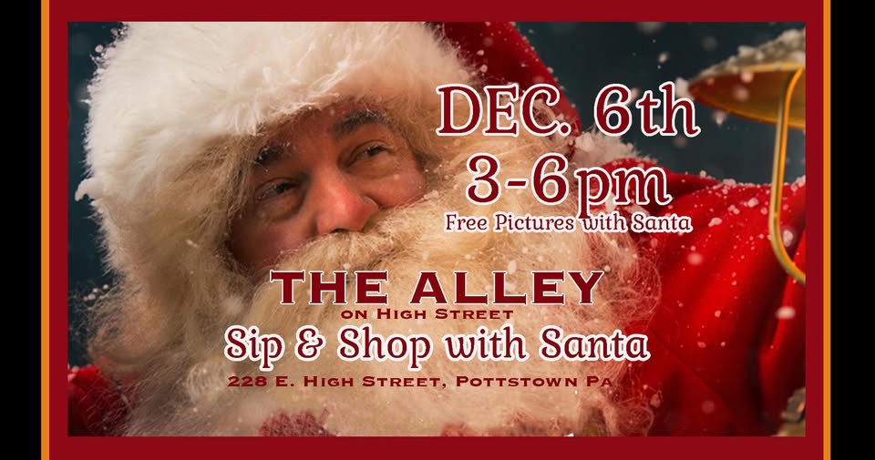 Come on down to The Alley for a fun Sip and Shop with Santa! The Alley will open 3-6 for you and your family to come and shop from local artists. Santa will float in on the Schuykill River by boat and make his way to The Alley some time after 3. Bring your own camera for pictures with Santa and let’s have some holiday fun!! Warm up inside The Alley with Santa and head to the outside to shop local artists!Christy Morrell (Made by Morrell) is the ONLY contact for this event