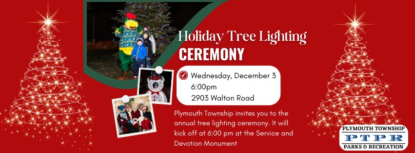 Plymouth Township invites you to the annual tree lighting ceremony. It will kick off at 6:00 pm at the Service and Devotion Monument Location: 2903 Walton RoadWednesday, December 36:00PM