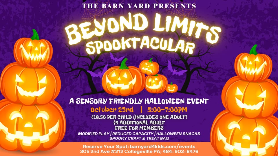 Come for a Sensory-Friendly Halloween Party!! Halloween games and fun sensory input activities! Limited capacity, no loud music, no flashy lights, and fun sensory exploration Spooky-themed activities!! Snacks will be provided and pizza is available for purchase beforehand! Guests are also welcome to bring their own snacks and food!