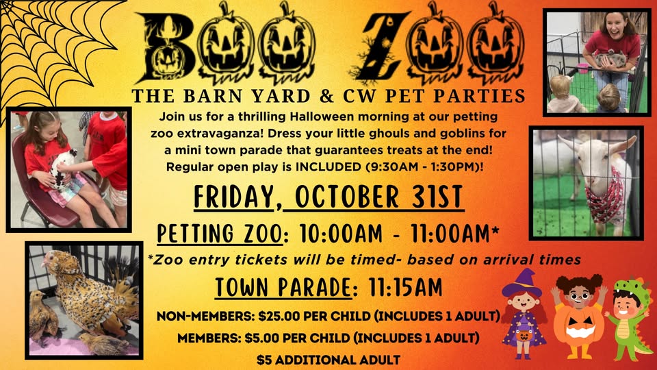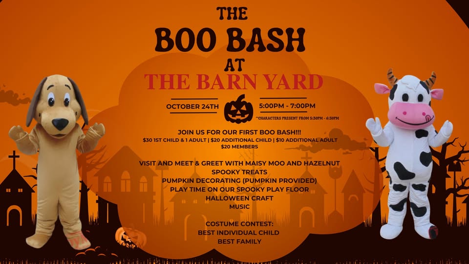 SAVE THE DATE for the most popular night of the year!! Our lucky Trick-or-Treaters will get to through the entire Barn Yard visiting local businesses, snacking on treats, and playing on our huge play floor FOR FREE
