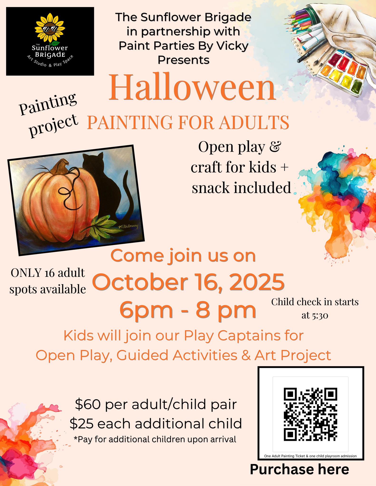 Flow through a fun Halloween-themed partner yoga class, then enjoy games, snacks, and crafts! Stay for open play until noon! Costumes are encouraged (for caregivers & children!) Pre-registration required and spots are limited! Book here: https://bookwhen.com/theplaygarden/e/ev-s3jo-20251029100000 Mats and water provided. Sorry, no refunds for classes. If you do need to miss a class, you may choose an open play time for a future date.
