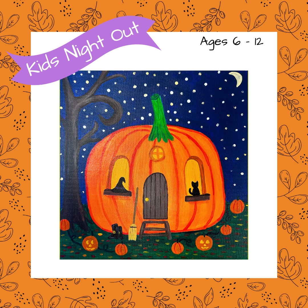 Kids join us for a fun night out! We will be painting this spooky pumpkin house canvas! *This is a parent drop off workshop. Parents drop off their children and come back to pick them up once the workshop is over at 8pm. Project will be taken home at conclusion of workshop. *Canvas paint stains clothing. Please dress your child appropriately.
