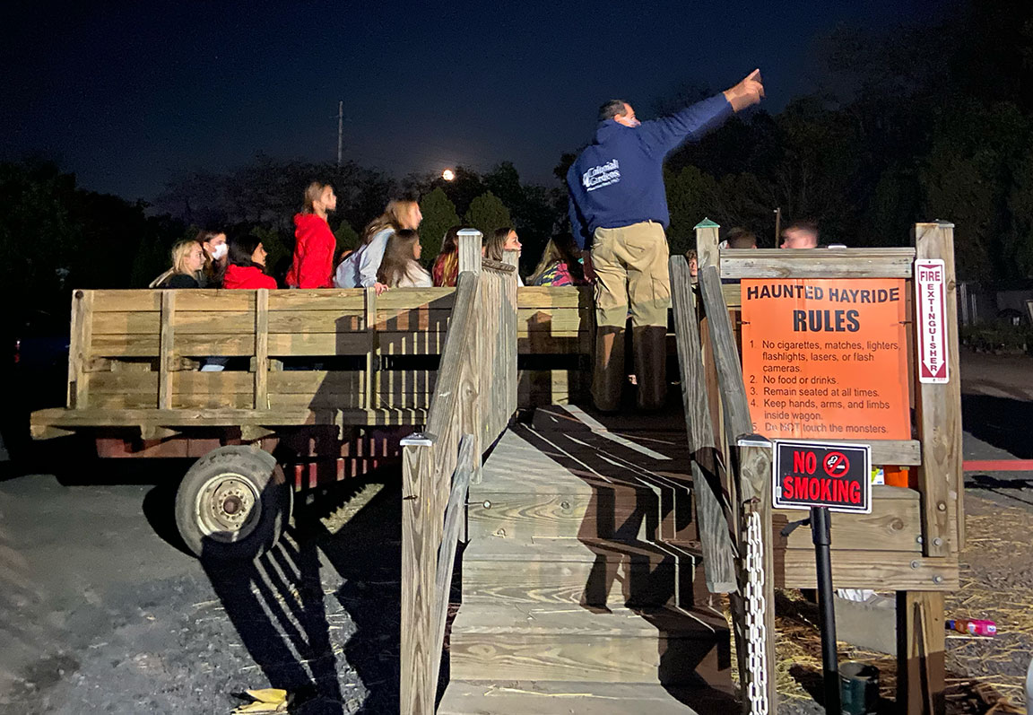 2025 Dates – October 3, 4, 10, 11, 12, 17, 18, 19, 24, 25, 26 7pm to 9:30pm Haunted Hayrides Brace yourself for plenty of scares as you ride through our haunted woods, full of monsters! Not recommended for children under 8. Haunted Hedge Maze Wind through the tall, dark hedges with monsters waiting around every corner. Welcome to Haunted Gardens! For over 30 years, Colonial Gardens have run haunted events for our community. This year, come get your screams in with our Haunted Hayrides and Haunted Hedge Maze! While you're here, shop pumpkins and Halloween décor to pumpkin spice up your home. Ticketing this year will exclusively take place online to help us with timed ticketing and to reduce indoor time and contact with our staff. Haunted Gardens events are not recommended for children under the age of 8, however, we understand that each child is different, and parents can use their discretion in bringing younger children to this event. Please remember that unused tickets are non-refundable. For younger crowds, we recommend visiting our website, colonialgardenspa.com, for information about our daytime events or checking out our Children's Night Hayride. Haunted Hayride Our Haunted Hayride features a 30-minute ride through our haunted woods, monsters hiding in the shadows of every tree. Get ready for surprises, screams, and good old-fashioned scares on our most popular attraction. Tickets are purchased for a designated arrival time to help us ease parking, however, riders may ride later than the arrival timeslot depending on crowds. Hayrides begin at 7pm. Want to skip the line? Don't want to sit with strangers? Groups can book a private wagon for a flat rate of $408.16. There is no minimum number of guests, but wagons can accommodate 20-25 people depending on the age and size of guests. Haunted Hayride Ticket for One person Ages 12+: $21.65 (with 2.65 in fees) Haunted Hayride Ticket for One person Ages 3-11: $19.48 (with 2.48 in fees) Private Wagon for up to 25 People: $375 Haunted Hedge Maze Our outdoor haunted hedge maze winds you through thick, dark hedges--into the clutches of monsters lurking just around the corner. Tickets for this attraction can be purchased separately, but we encourage guests to book a combination ticket with the hayride to save a few dollars and make the most of their fun. The Haunted Hedge Maze tickets can be used after you ride your hayride. Haunted Hedge Maze Ticket: $8 Combination Ticket for Haunted Hayride and Haunted Hedge Maze: Ages 12+: $27.08 (with $3.08 in fees) Ages 3-11: $24.91 (with 2.91 in fees) Please note that tickets are discounted online compared to in the store to off-set service fees. We encourage folks to buy online as that is the only way to guarantee a ticket. Tickets in store will be $3 more expensive than .