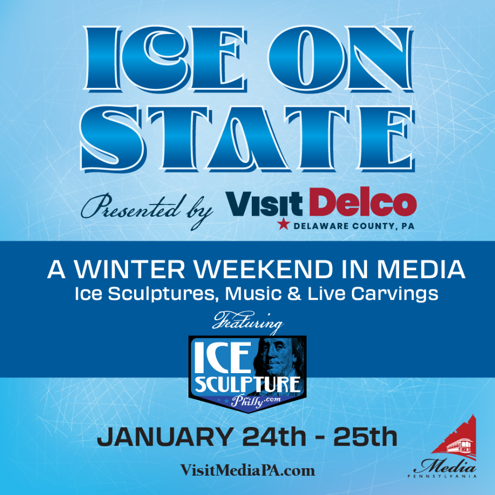 ICE ON STATE is BACK! The Media Business Authority is now accepting ice sculpture orders for ICE ON STATE, presented by Visit Delco, PA -- this exciting event is returning to downtown Media on January 24th & 25th! Last year, 30+ custom sculptures spotlighted local businesses and wowed thousands of visitors along State Street, and this year will be even bigger & bolder! * Sculptures are NOT limited to businesses! *Celebrate schools, nonprofits, teams, birthdays, retirements, and milestones with a one-of-a-kind ice creation