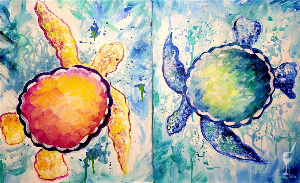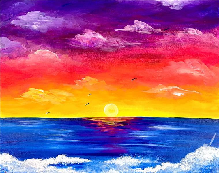 While we welcome painters of any age, this painting is recommended for ages 7 & up. We use acrylic paint in our events. It is non-toxic, but does stain fabric. We provide aprons for guests to wear, but we recommend wearing clothing you wouldn’t mind getting a little paint on. Click UPGRADES AVAILABLE to add Glitter or a DIY Scented Soy Wax Candle to your reservation! ARRIVE: Please arrive about 10-15 minutes early to check-in, get smocked, and settle in.